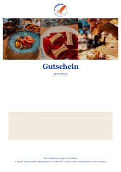 Ob ein romantisches Abendessen zu zweit, ein geselliger Abend mit Freunden oder ein Familienessen voller Geschmackserlebnisse – mit unserem Wertgutschein haben Ihre Liebsten die Freiheit, ihr kulinarisches Erlebnis ganz nach Wunsch zu gestalten.